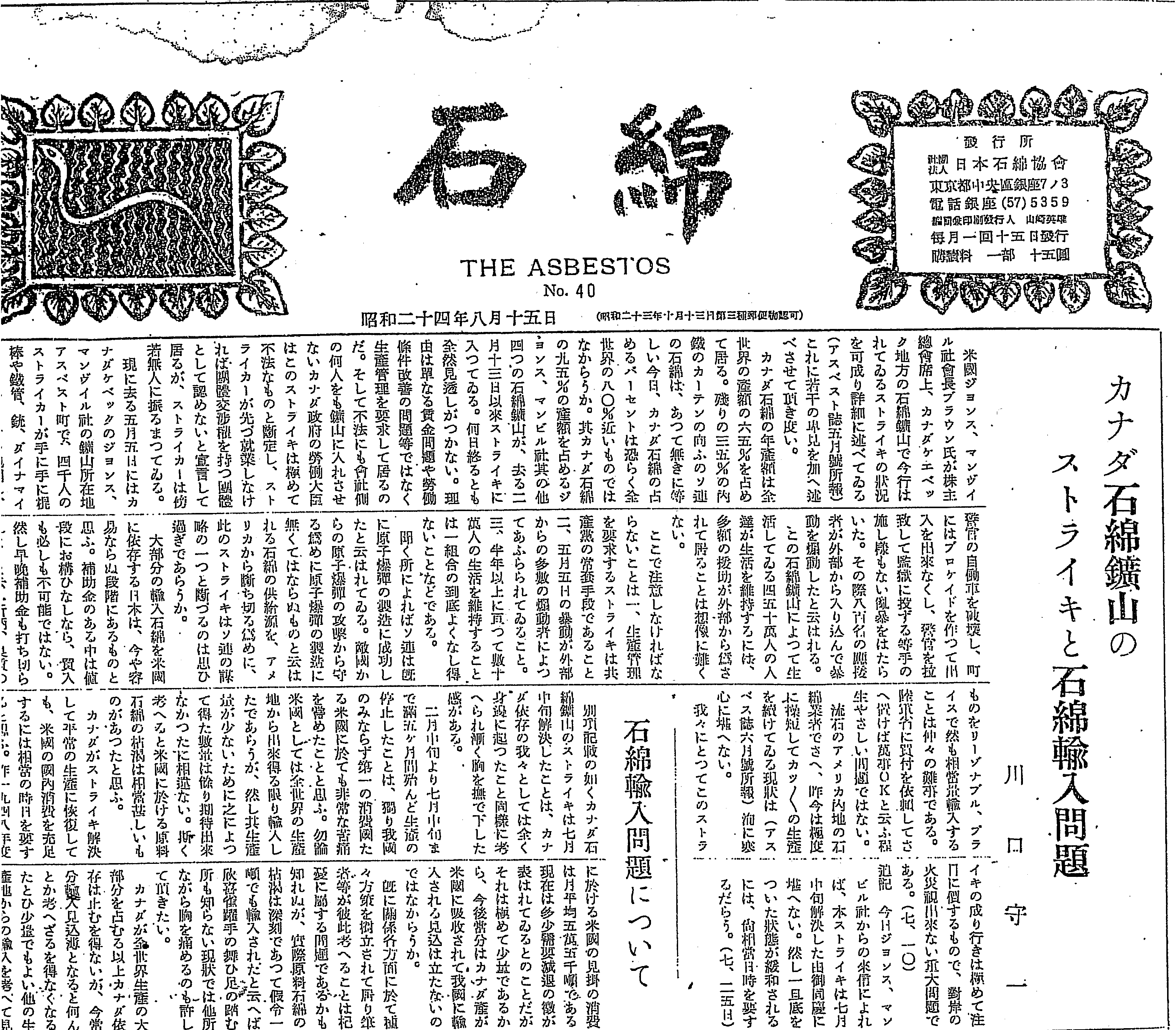 資料 石綿協会誌1949年8月15日号